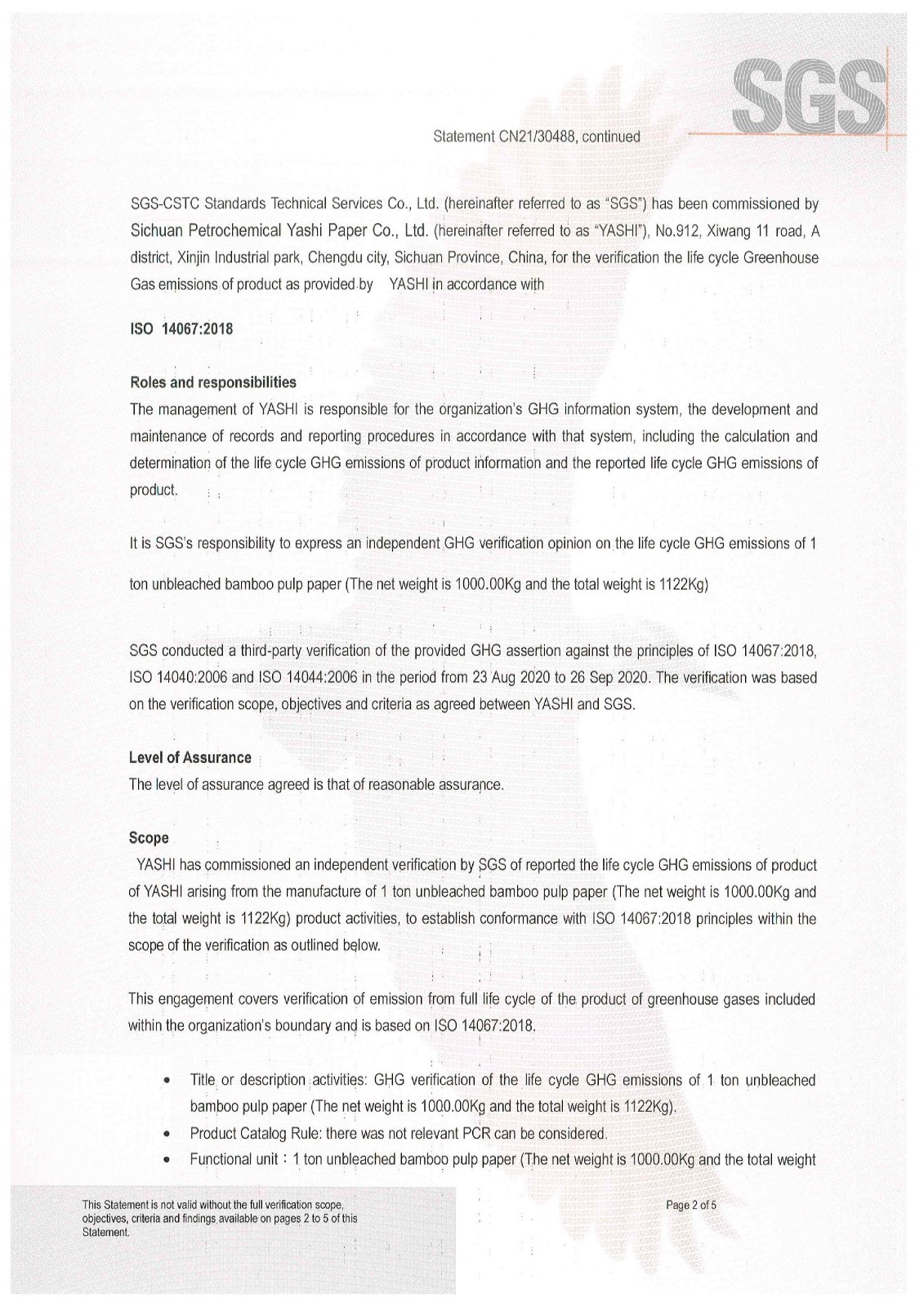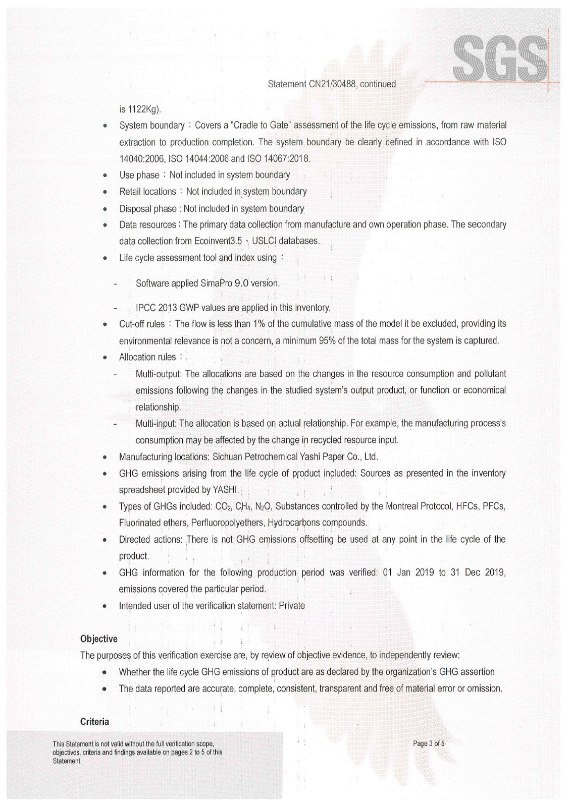 溫室氣體核查聲明